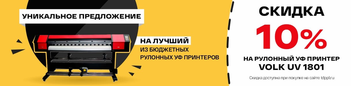 Не упустите возможность приобрести один из лучших бюджетных УФ-принтеров Volk UV 1801 со скидкой 10% только в Торговом доме "Папиллонс". Вы можете оформить заказ на сайте tdppl.ru, по телефону 8-800551-25-83 или отправить заявку на почту ann@thppl.ru.