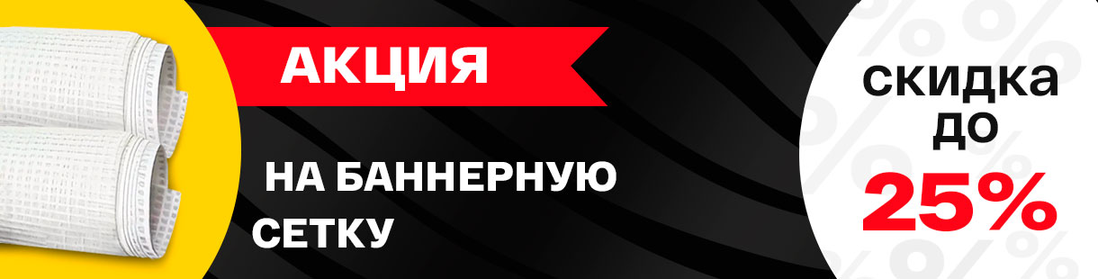 Запускаем мегавыгодную акцию на один из самых популярных материалов для наружной рекламы. Успейте приобрести наши топовые баннерные сетки с подложкой GLK X91933 со скидкой 25%! Эта сетка — самый настоящий бестселлер, созданный специально для наружной рекламы в условиях Российского климата. Она легкая, прочная и идеально подходит для самых разных погодных условий. Благодаря улучшенным характеристикам баннерные сетки GLK обеспечат вам сочную и долговечную рекламу!