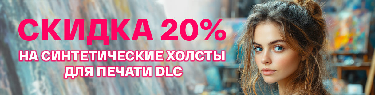 Успейте приобрести благородные синтетические холсты для печати на 100% полиэстеровой основе по скидке 20%! Эти превосходные полотна с ровным, практически гладким печатным покрытием — отличный выбор для создания картин, фотопортретов и премиальных элементов интерьерного декора. Состав покрытия синтетических холстов DLC — экологичная смесь на основе ПВА и латекса, которая не выделяет вредных веществ. Все наши холсты отлично печатаются сольвентными, экосольвентными, латексными или УФ-отверждаемыми чернилами.